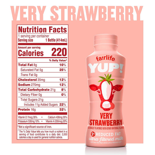 Fairlife YUP! Low Fat, Ultra-Filtered Milk, Very Strawberry Flavor, All Natural Flavors (Packaging May Vary), 14 Fl Oz (Pack of 12)